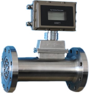Menggunakan turbin yang berputar; kelajuan putaran adalah sebanding dengan kelajuan cecair.